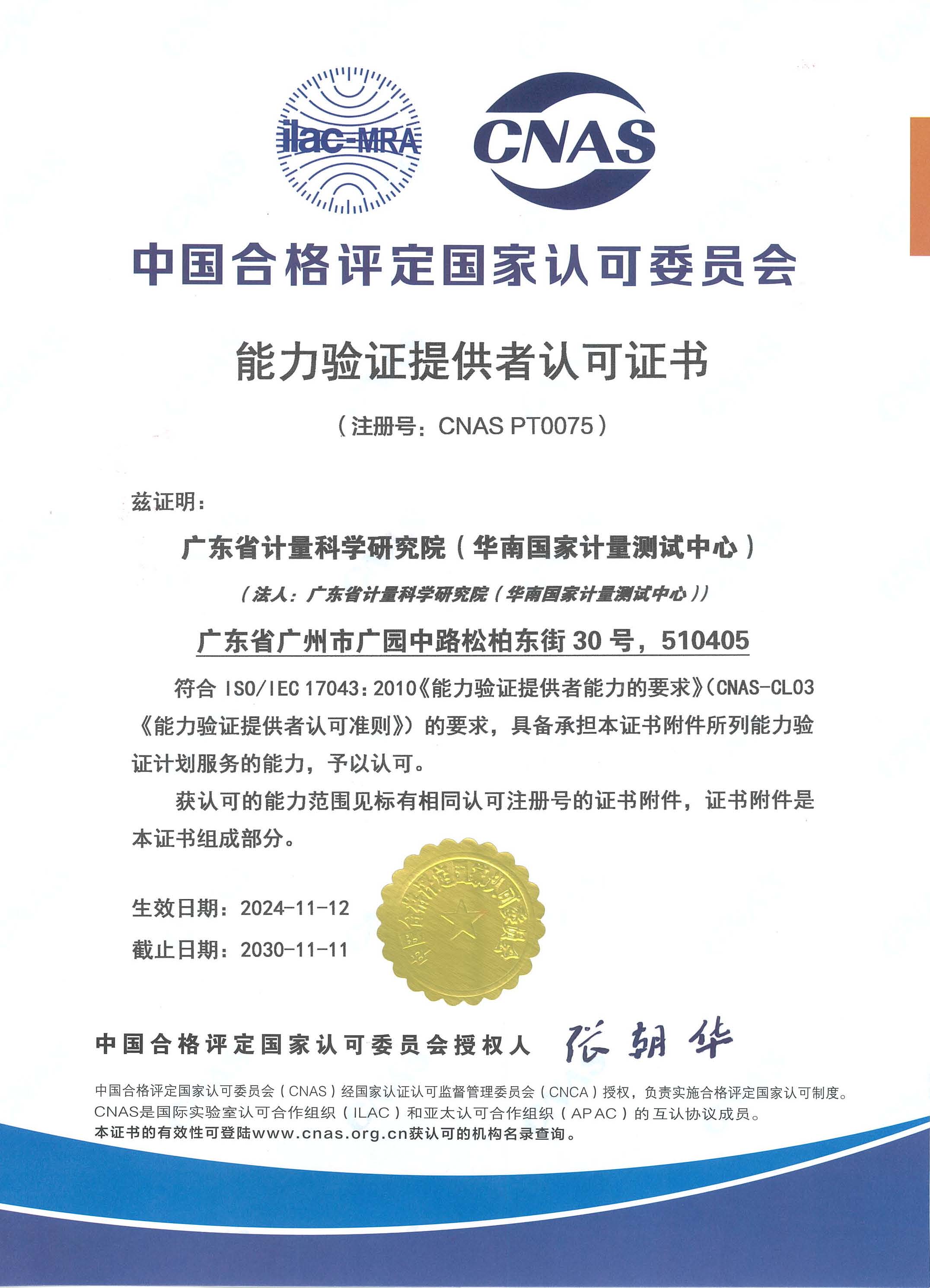 | 广东省计量科学研究院(华南国家计量测试中心)是获得中国合格评定国家认可委员会认可的能力验证提供者(注册号:CNAS PT0075),能力范围可在CNAS官方发布的认可数据查询。 广东省院、华南中心组织和实施能力验证活动,客观、公正地为参加实验室出具能力评价报告。 开展年度能力验证计划和提供测量审核(“一对一”的能力验证计划)服务,以满足CNAS对认可机构能力验证的要求,以及国内众多检测、校准实验室对能力验证方面的需求。 |