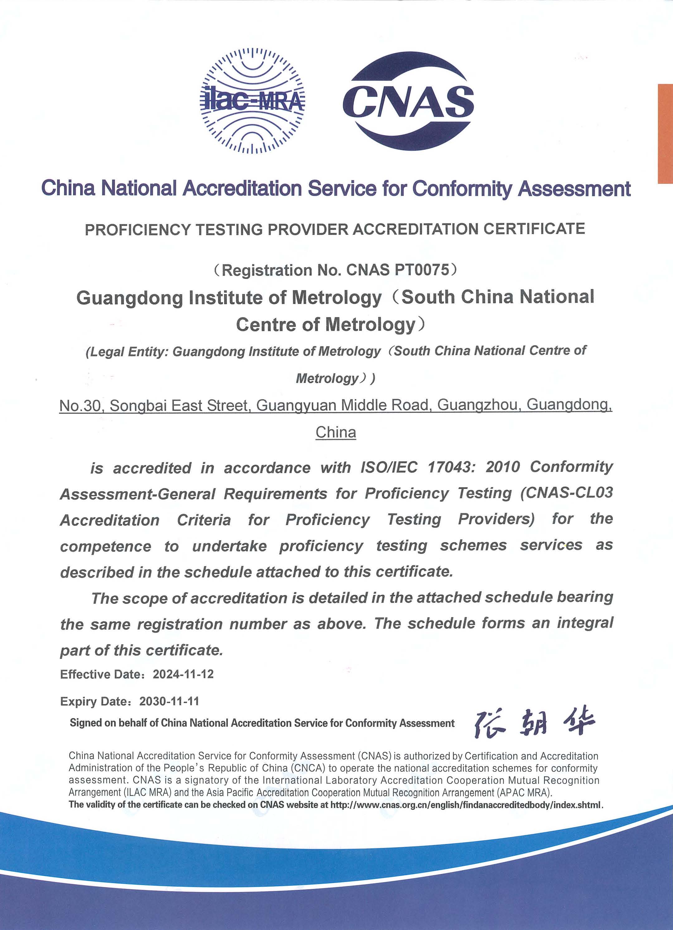 CNAS能力验证提供者认可证书(英文 ) |